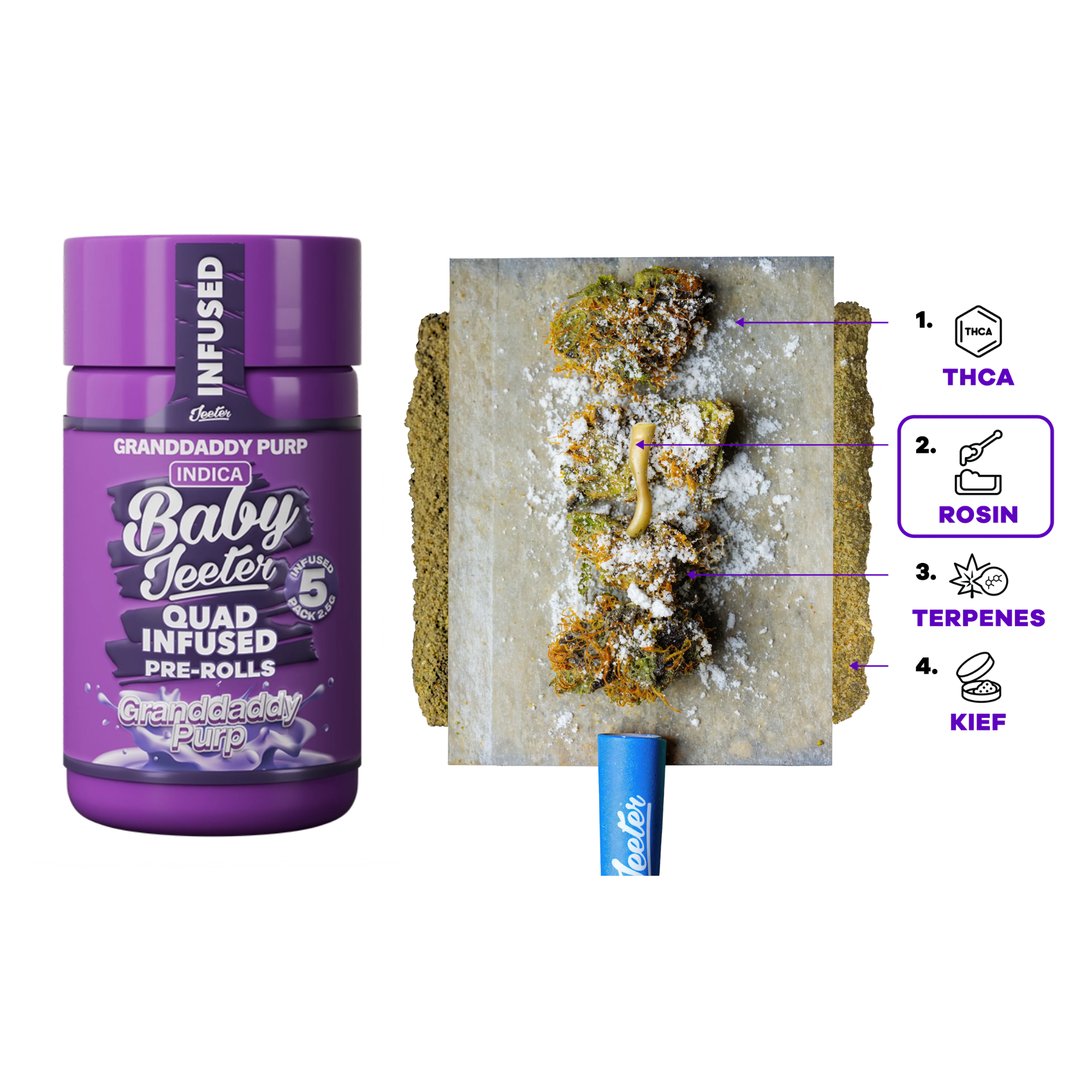 Infused with thca diamonds and rosin, dusted in kief