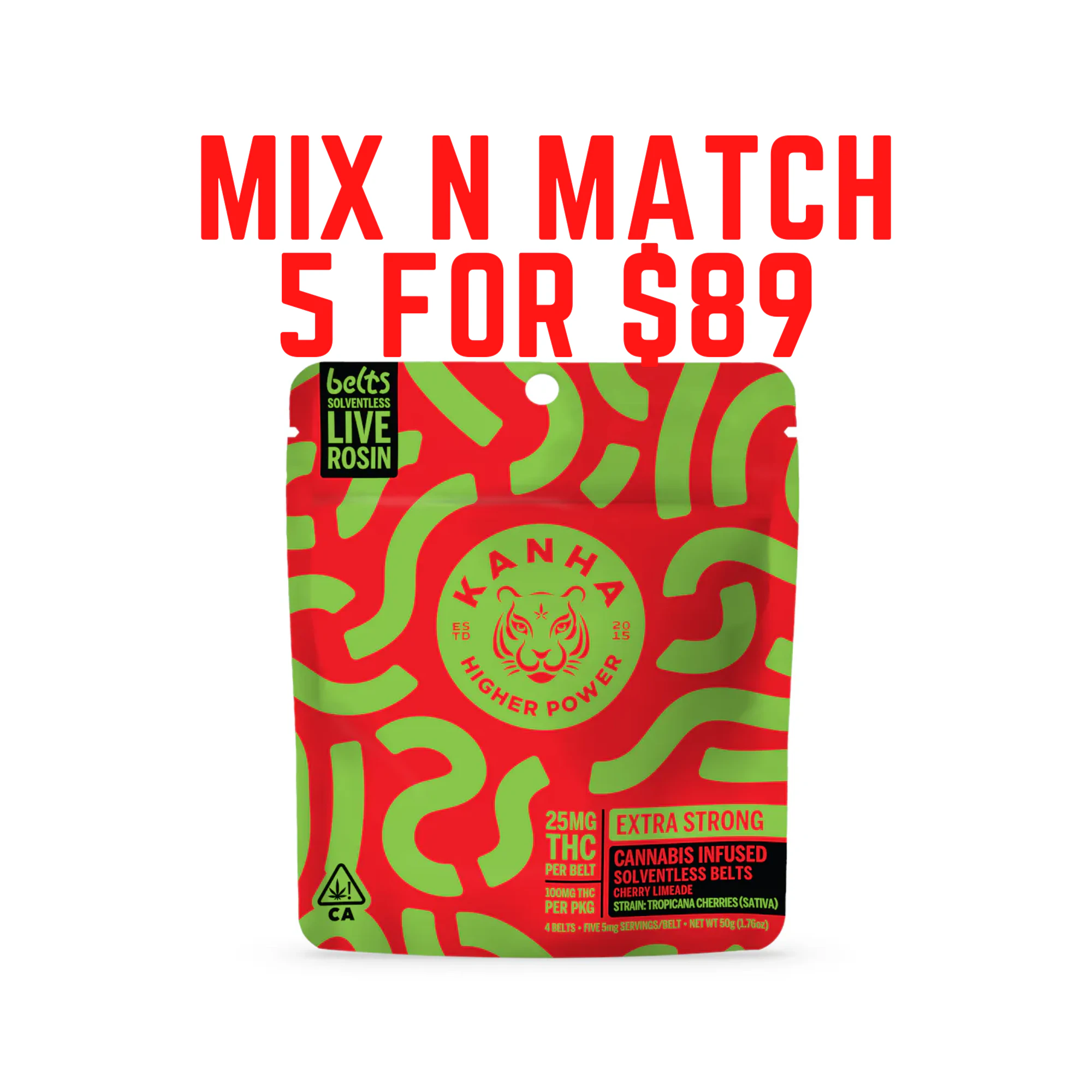 Zing into action with Kanha Cherry Limeade Belts, a punchy Sativa blend crafted for the thrill-seekers. Made with Tropicana Cookies solventless live rosin for a zesty, cerebral effect.