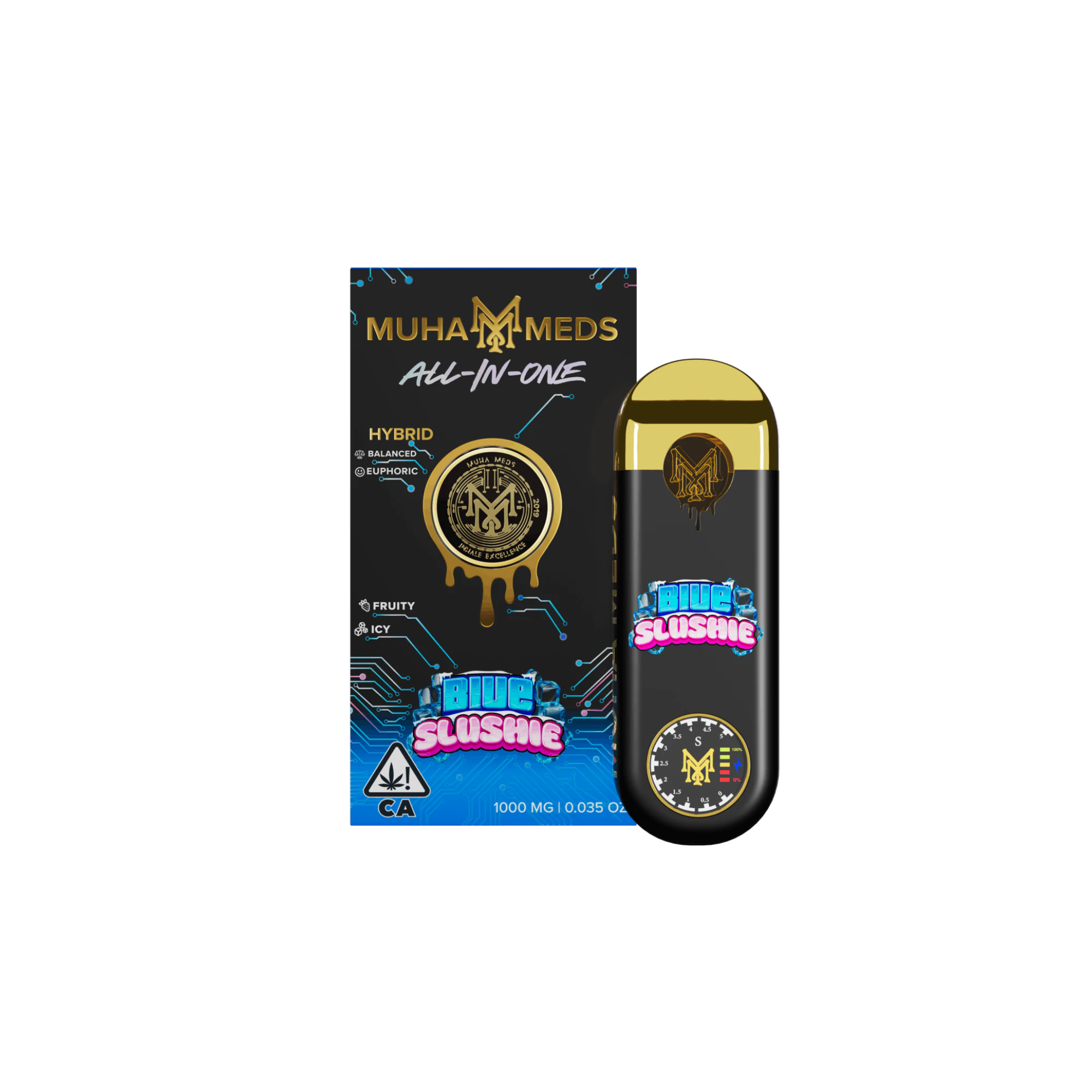 Blue Slushie, a hybrid with sweet blueberry and tart flavors, delivers a balanced high that energizes the mind while relaxing the body. Perfect for socializing or creative solo sessions, it offers a delightful mix of euphoria and calm. | A sleek, discrete and high performing disposable distillate vape pen for people on-the-go.Meticulously crafted premium distillate cartridges designed to provide an elevated cannabis experience. Made with cannabis derived terpenes to offer a balanced aroma and flavor