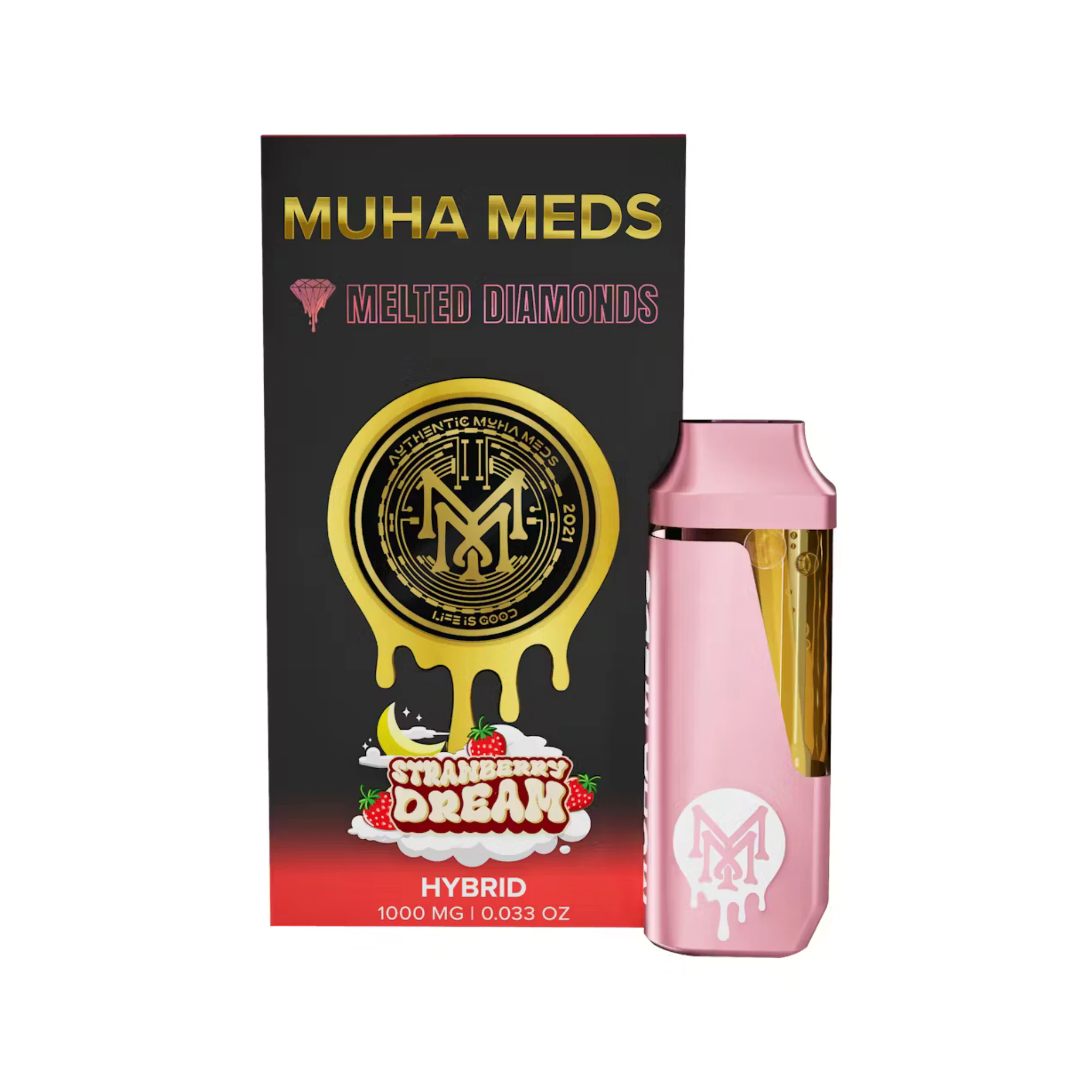 Strawberry Dream combines sativa’s uplifting qualities with indica’s soothing body effects for a balanced high. Bursting with fresh strawberry flavor and subtle floral undertones, it delivers both euphoria and comfort. | Muha Meds Melted Diamonds Disposables are extracted from freshly harvested flash-frozen cannabis, preserving the full spectrum of cannabinoids and terpene profile. This ensures a smooth, flavorful, and enjoyable vaping experience every time. Muha's disposables are sleek with a smooth matte finish, perfect for on the go use.