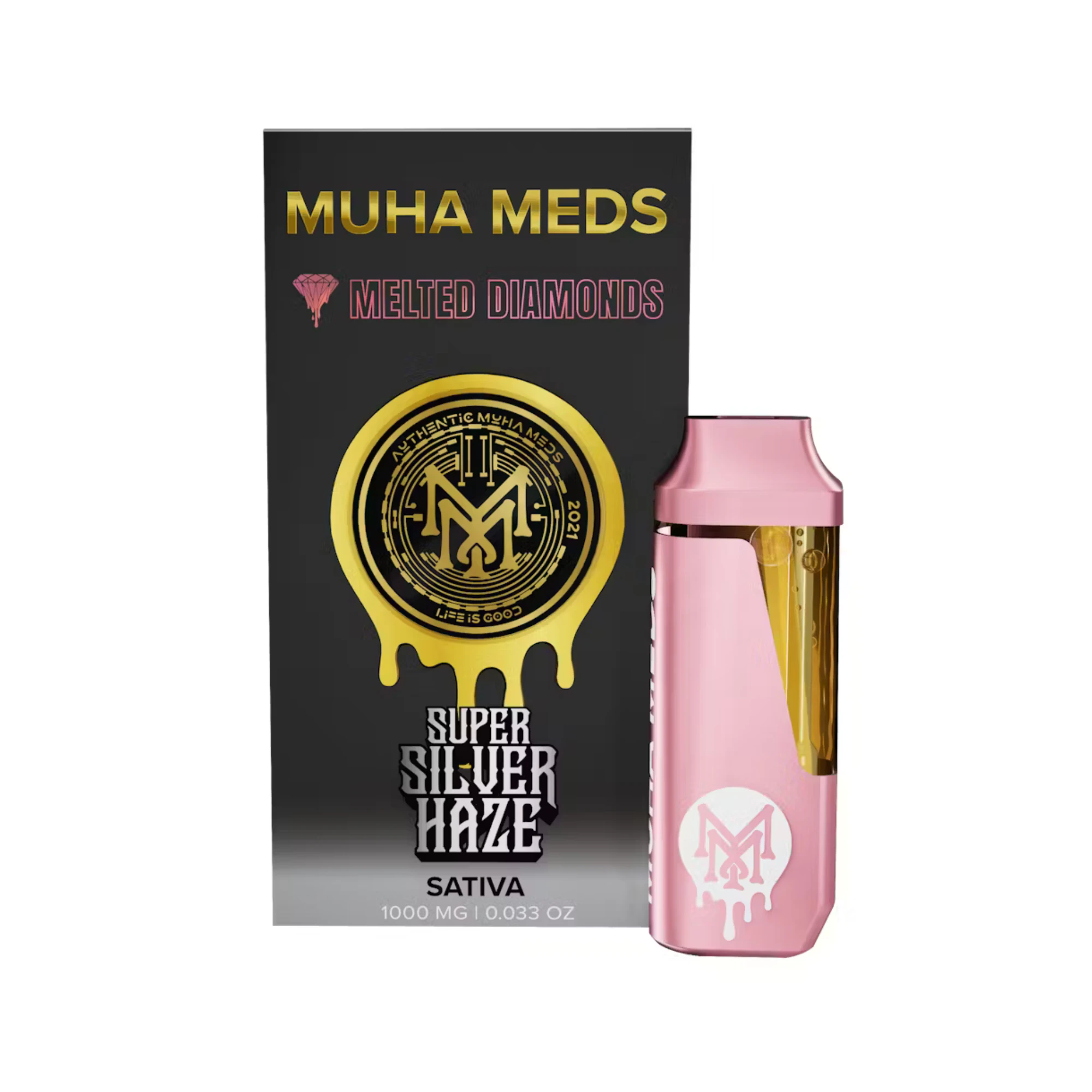 A legendary sativa, Super Silver Haze offers an energizing cerebral buzz that enhances focus, creativity, and motivation. Its sweet, earthy, and citrusy profile makes it an ideal daytime strain for mood and productivity. | Muha Meds Melted Diamonds Disposables are extracted from freshly harvested flash-frozen cannabis, preserving the full spectrum of cannabinoids and terpene profile. This ensures a smooth, flavorful, and enjoyable vaping experience every time. Muha's disposables are sleek with a smooth matte finish, perfect for on the go use.