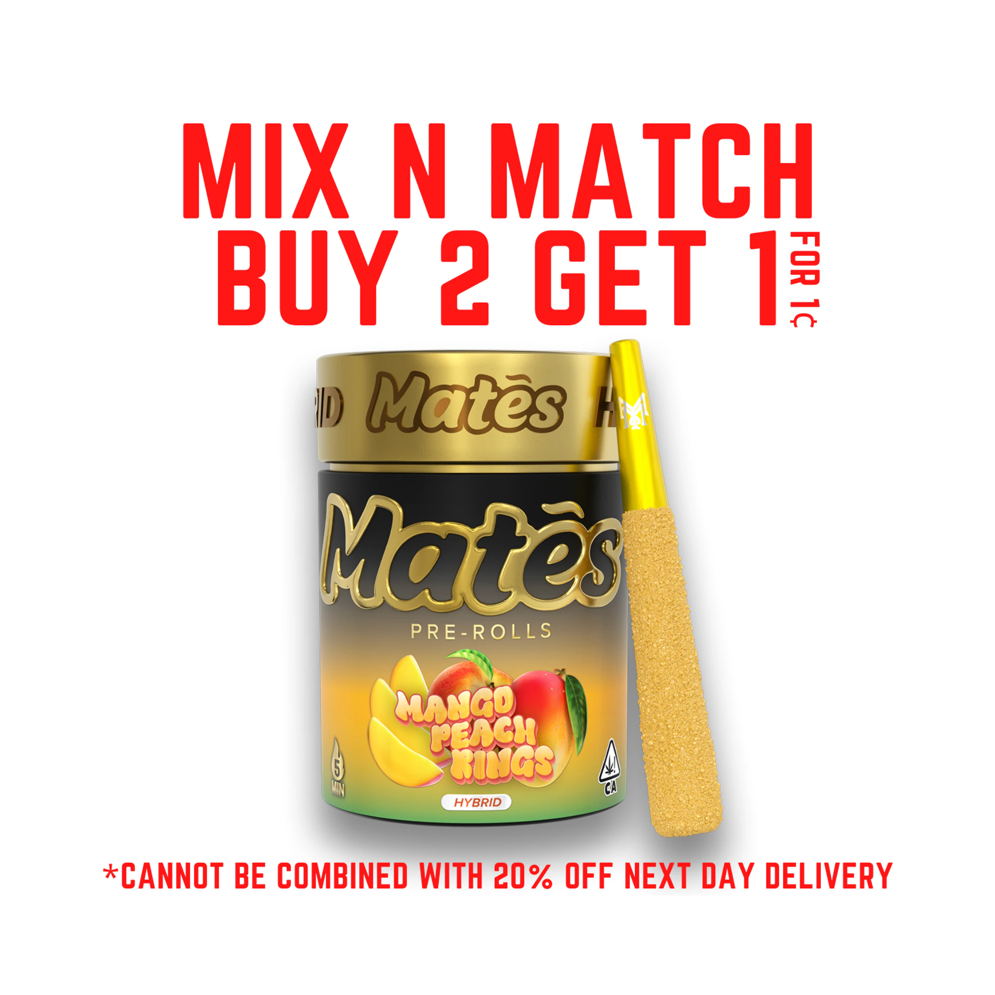 Mango Peach Rings Mates deliver a perfect blend of tropical flavors, combining the juicy sweetness of mangoes and peaches for a refreshing experience. These pre-rolls offer a balanced mix of indica and sativa effects, providing a euphoric high that enhances mood and creativity with each fruity inhale.